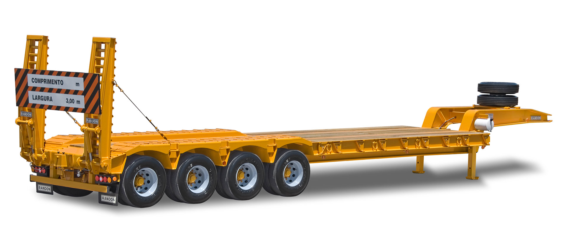 O chassi em perfil “I” de alta resistência foi concebido para suportar torções e impactos sem comprometer a geometria. O pescoço fixo e o pára-choques traseiro fixo reforçam a rigidez estrutural e o comportamento dinâmico em piso misto. O piso em madeira de 50 mm oferece aderência superior e ajuda a absorver vibrações durante a acomodação da carga. A rampa traseira hidráulica hidropneumática, com 600 mm de largura, agiliza o acesso de máquinas pesadas com menor esforço humano, aumentando a segurança da operação. As coberturas de rodas soldadas protegem componentes críticos e elevam a durabilidade, enquanto as argolas de amarração permitem travamentos múltiplos e bem distribuídos, essenciais para transporte especial.